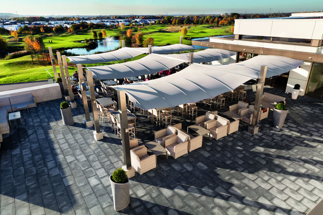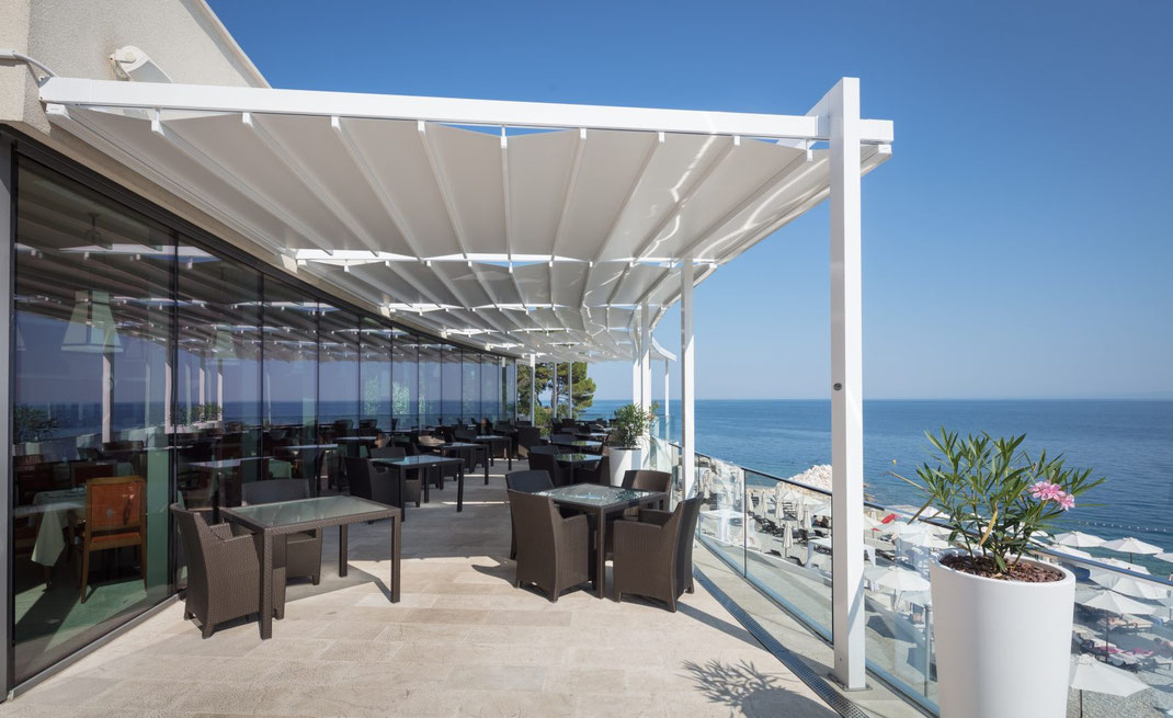 Faltdachpergolen sind architektonisch anspruchsvolle Beschattungssysteme, die sich hervorragend für gastronomische Außenbereiche eignen. Die Stabilität der Pergola in Verbindung mit einem