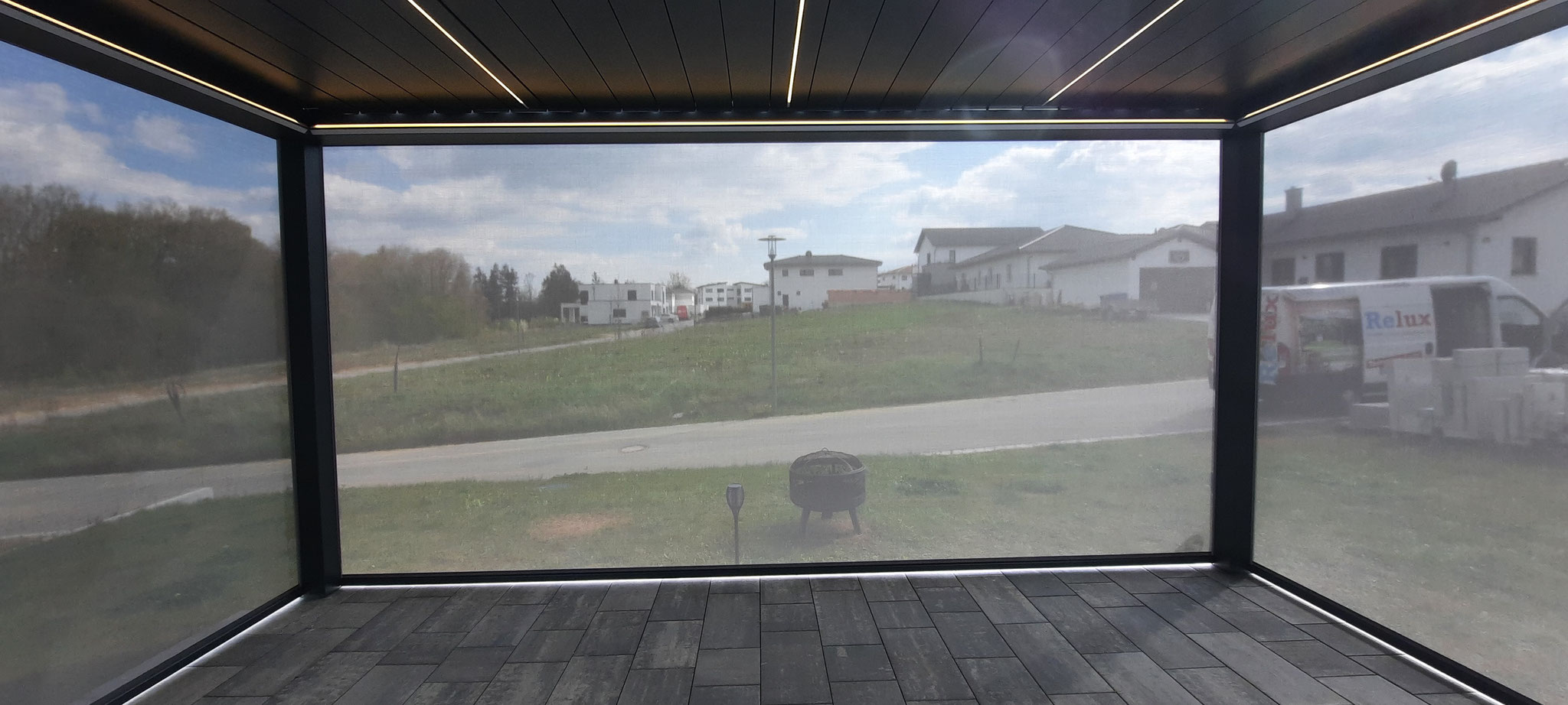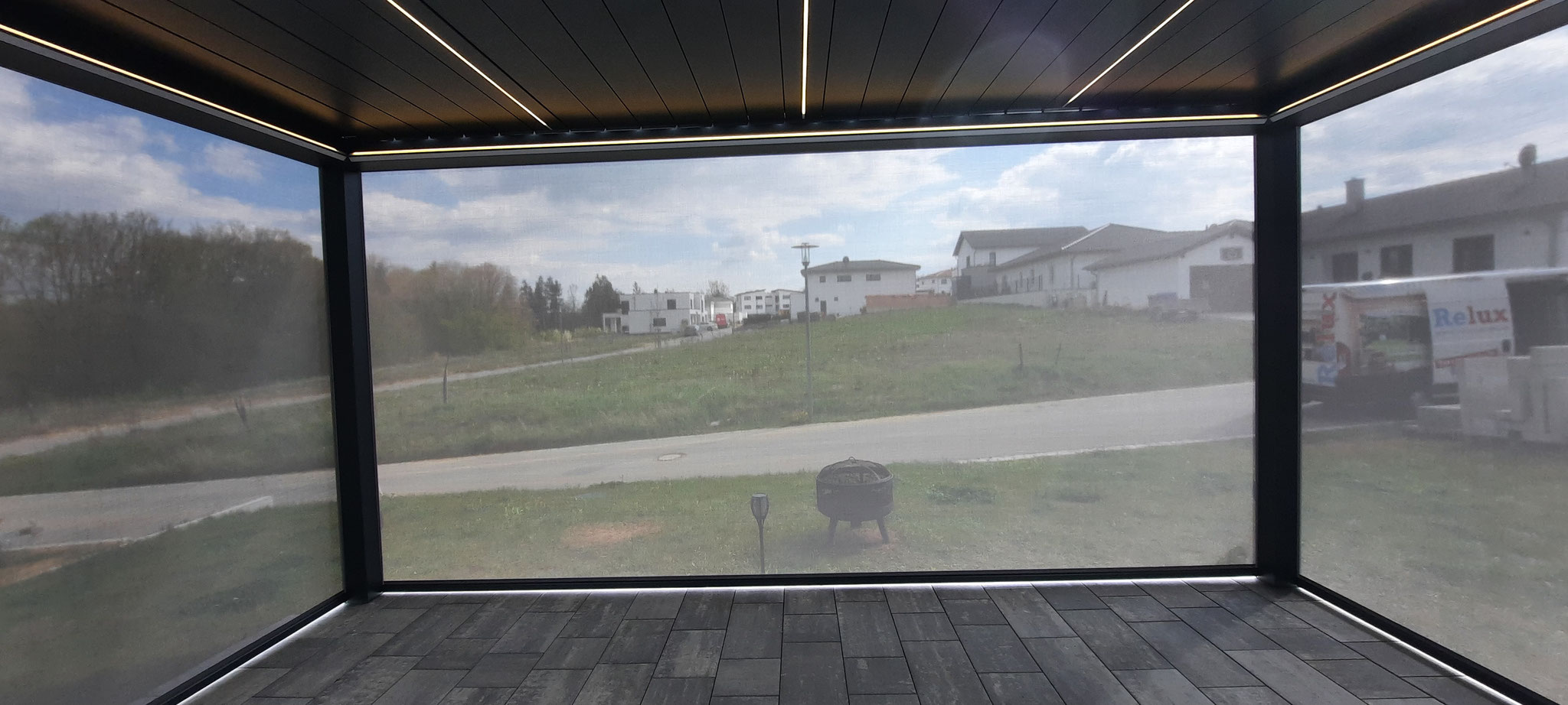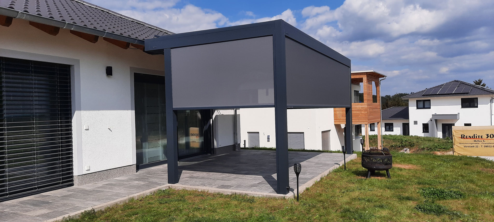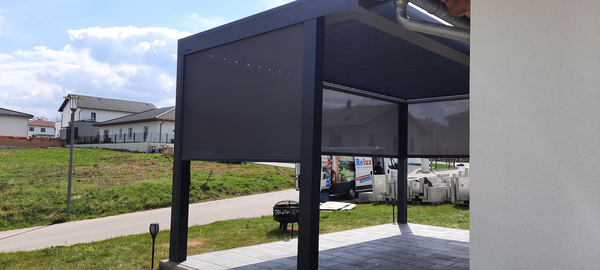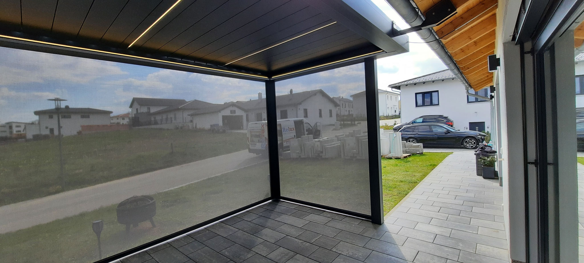 Die Befestigung stellte bei diesem Kunden eine besondere Herausforderung dar. Dank unserer individuellen Planung haben wir spezielle Konsolen entworfen und hergestellt. Dadurch konnte das Lamellendach sicher am Haus befestigt werden, und der Spalt zur Regenrinne wurde nachträglich verblecht.