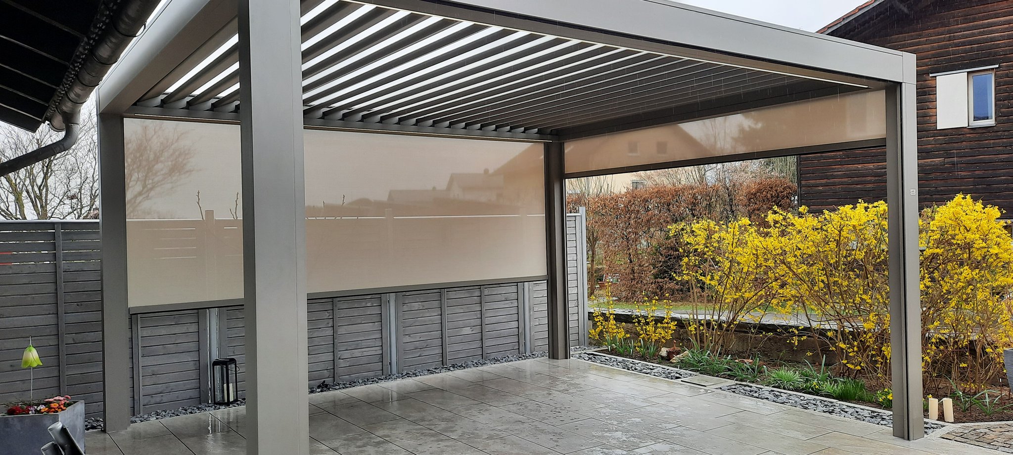 Bei diesem freistehenden Lamellendach in Sonderfarbe wurde auch das Fundament von uns gemacht. Dem Kunden war wichtig, alles aus einer Hand zu bekommen.