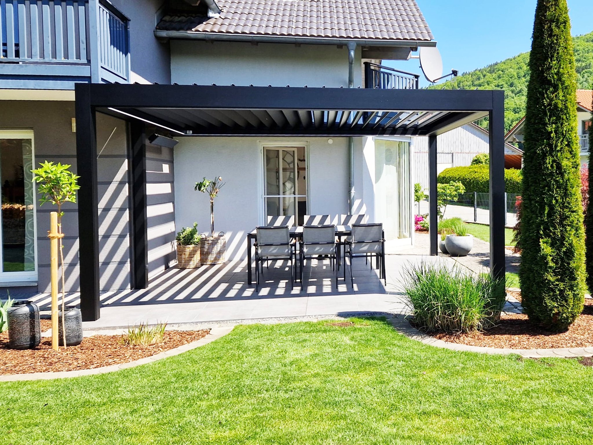 Farbe: Ral 9005 tiefschwarz Ausstattung: direkte Beleuchtung in weiß, Screens an 3 Seiten, Steuerung durch Druckknöpfe oder Smartphone